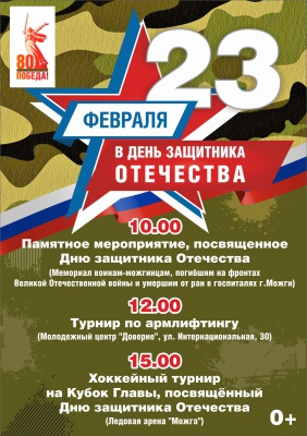 День защитника Отечества отметят в Можге. 10:00 - Памятное мероприятие (Мемориал воинам-можгинцам, погибшим на фронтах Великой Отечественной войны и умершим от ран в госпиталях г. Можги);