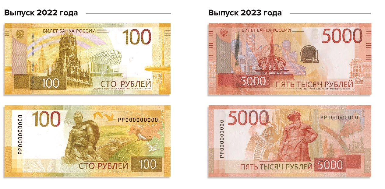 Банк России на постоянной основе проводит работу, направленную на повышение защищенности денежных знаков от подделки, в том числе модернизацию банкнот. В настоящее время в обращение введены модернизированные банкноты номиналом 100 рублей выпуска 2022 года и 5000 рублей выпуска 2023 года. Банкноты образца 1997 года являются законным средством платежа, остаются в обращении наравне с модернизированными банкнотами после их ввода и являются обязательными к приему при оплате товаров и услуг (работ).