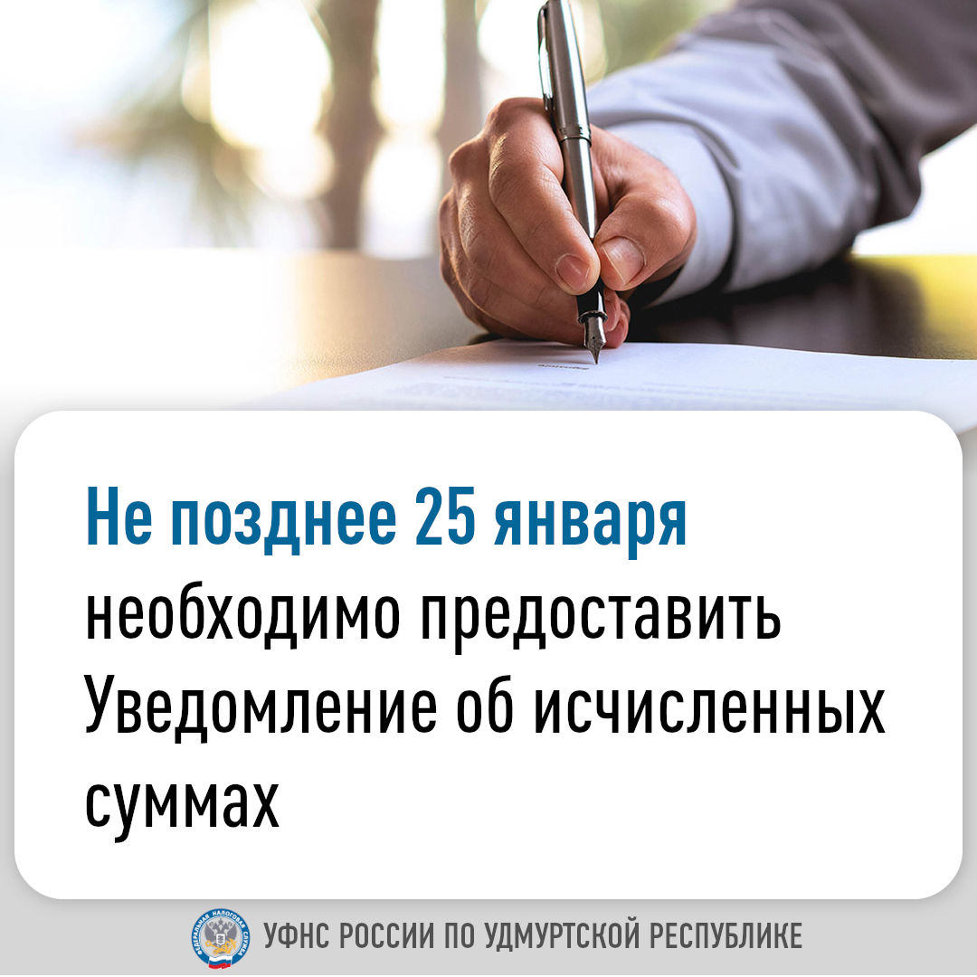 Не позднее 25 января необходимо предоставить Уведомление об исчисленных суммах