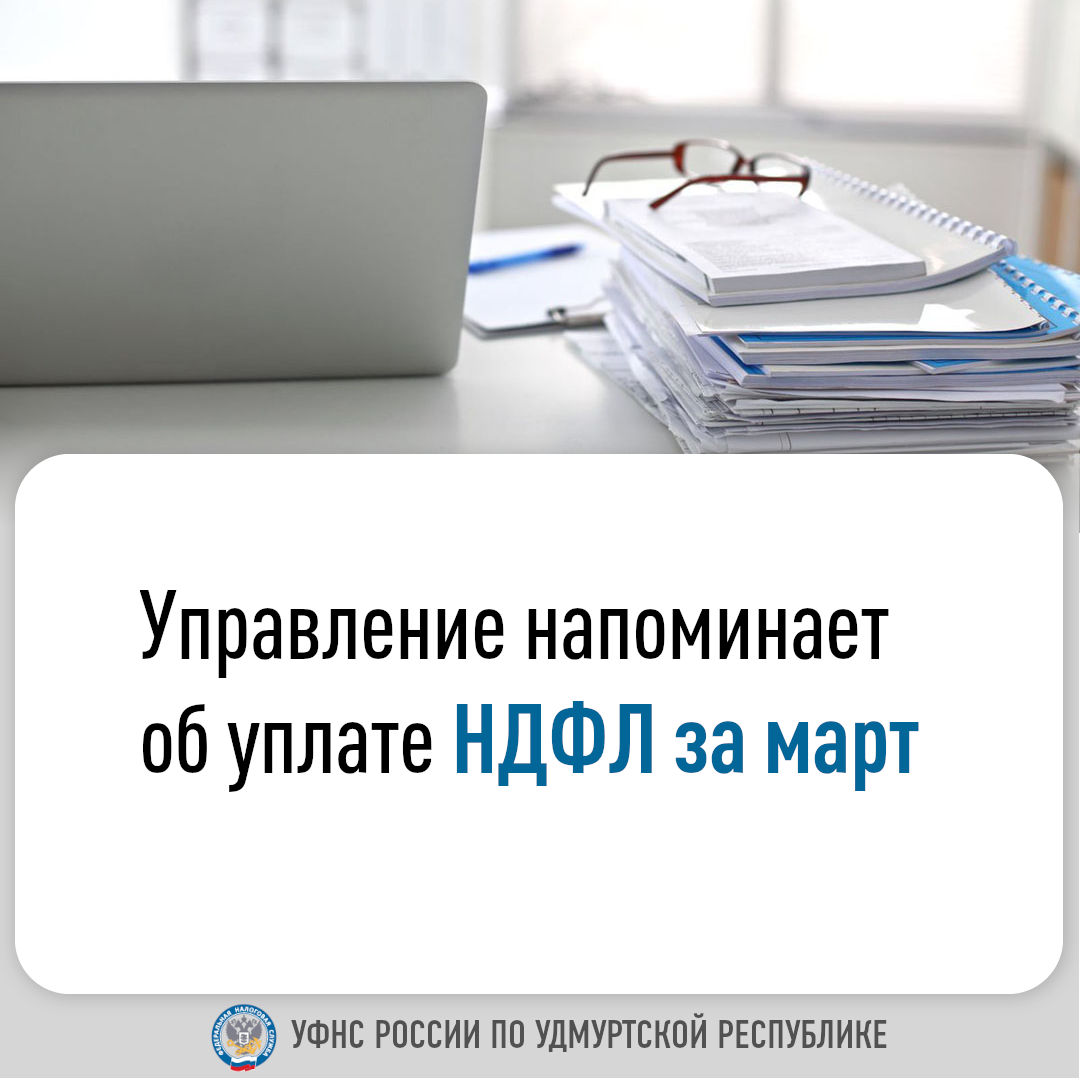УФНС России по Удмуртской Республике напоминает: - до 3 апреля подать уведомление об исчисленных и удержанных суммах НДФЛ за период с 23.03.2024 по 31.03.2024 налоговым агентам по НДФЛ (организации и индивидуальные предприниматели).