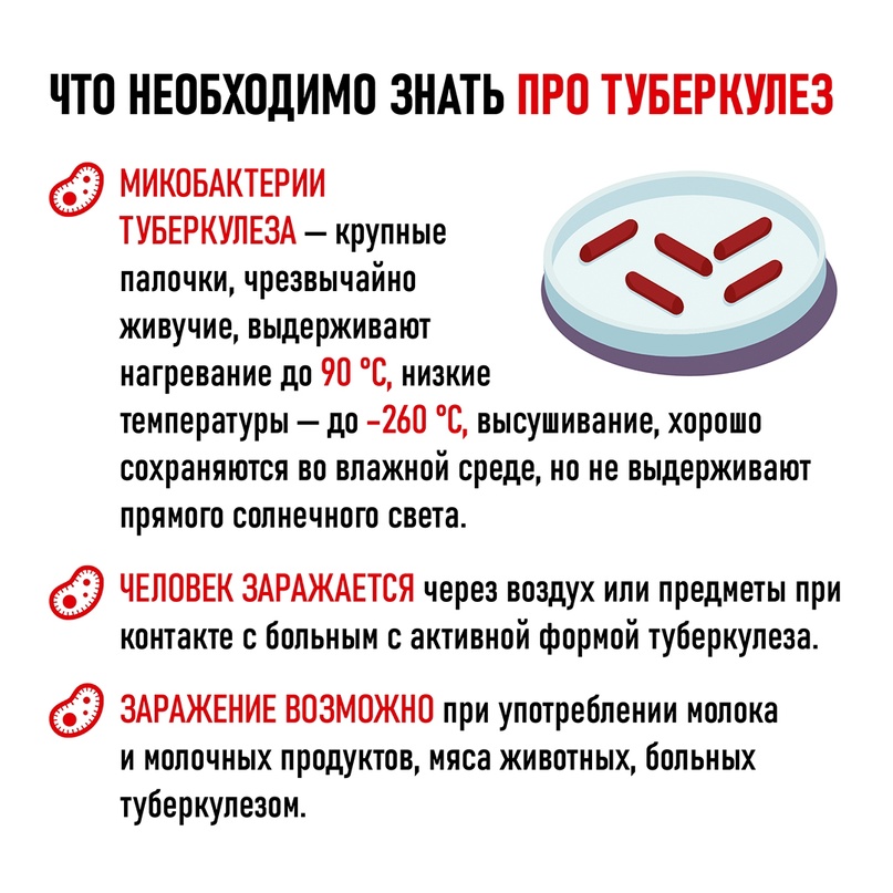 Микобактерии туберкулеза является одними из самых древних и стойких возбудителей инфекции: они выдерживают нагревание до +90 градусов и понижение температуры до -260 градусов Цельсия, хорошо переносят высушивание и повышенную влажность окружающей среды.